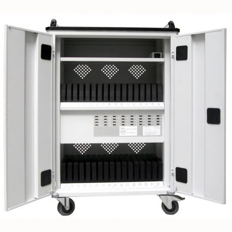 - Les servantes alimentées : Particulièrement appréciées en milieu scolaire, ces armoires sur roulettes permettent de ranger et sécuriser PC portables ou tablettes. Chaque compartiment comporte une prise électrique permettant de mettre en charge les appareils. Elles permettent de stocker, sécuriser et déplacer jusqu’à 30 pc portables ou tablettes.